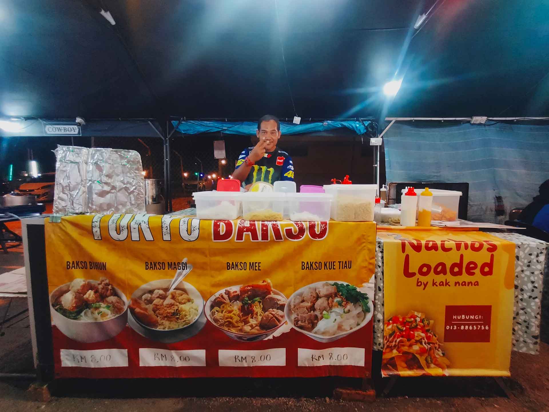 Nikmati keunikan Tokyo Bakso di Putra Street Food Court yang menyajikan hidangan bakso panas dengan pilihan mi yang pelbagai untuk kepuasan anda. Gerai ini menawarkan menu utama seperti Bakso Bihun, Bakso Maggi, Bakso Mee, dan Bakso Kue Tiau yang semuanya berharga hanya RM 8.00 semangkuk, serta menu sampingan viral Nachos Loaded by kak nana yang pastinya memikat selera.